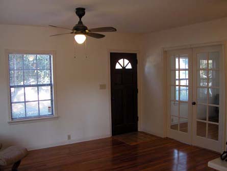 hardwood with a tiled kitchen and bath. The house upstairs is carpeted with a